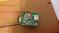 After removing the circuit board from the case, all the components on the bottom were de-soldered, except for the micro-usb port. Next positive and negative leads were soldered for power.